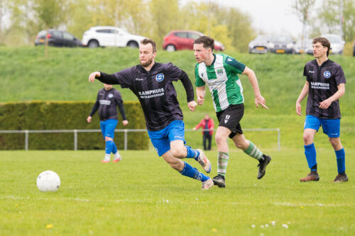 Beeldverslag van de wedstrijd tussen VV SIOS 1 en VV Holwierde 1, gespeeld op sportpark De Lange Twee in Sauwerd.