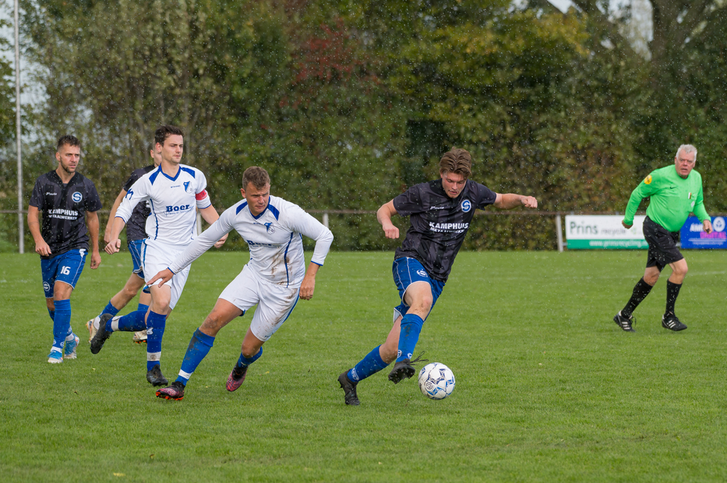 Beeldverslag van de wedstrijd tussen VV SIOS 1 en VV Middelstum 1, gespeeld op sportpark De Lange Twee in Sauwerd.