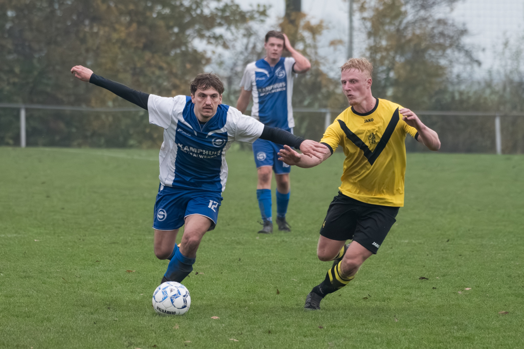 Beeldverslag van de wedstrijd tussen VV SIOS 1 en VV Poolster 1, gespeeld op sportpark De Lange Twee in Sauwerd.